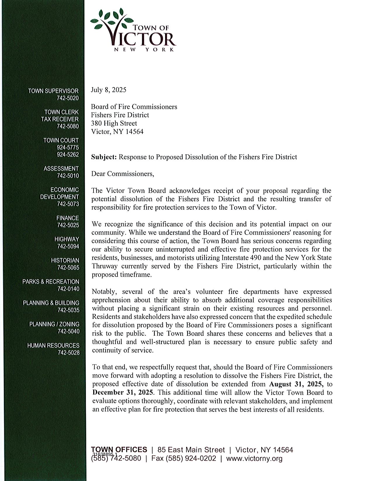 [ARCHIVED] Town Board Response to Proposed Dissolution of the FFD