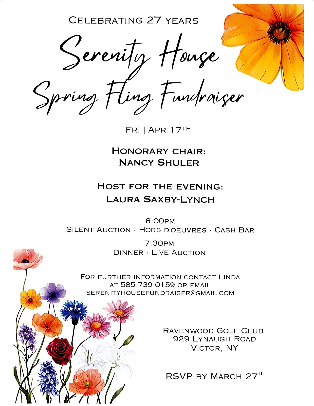 For further information contact Linda at 585-739-0159 or email: serenityhousefundraiser@gmail.com